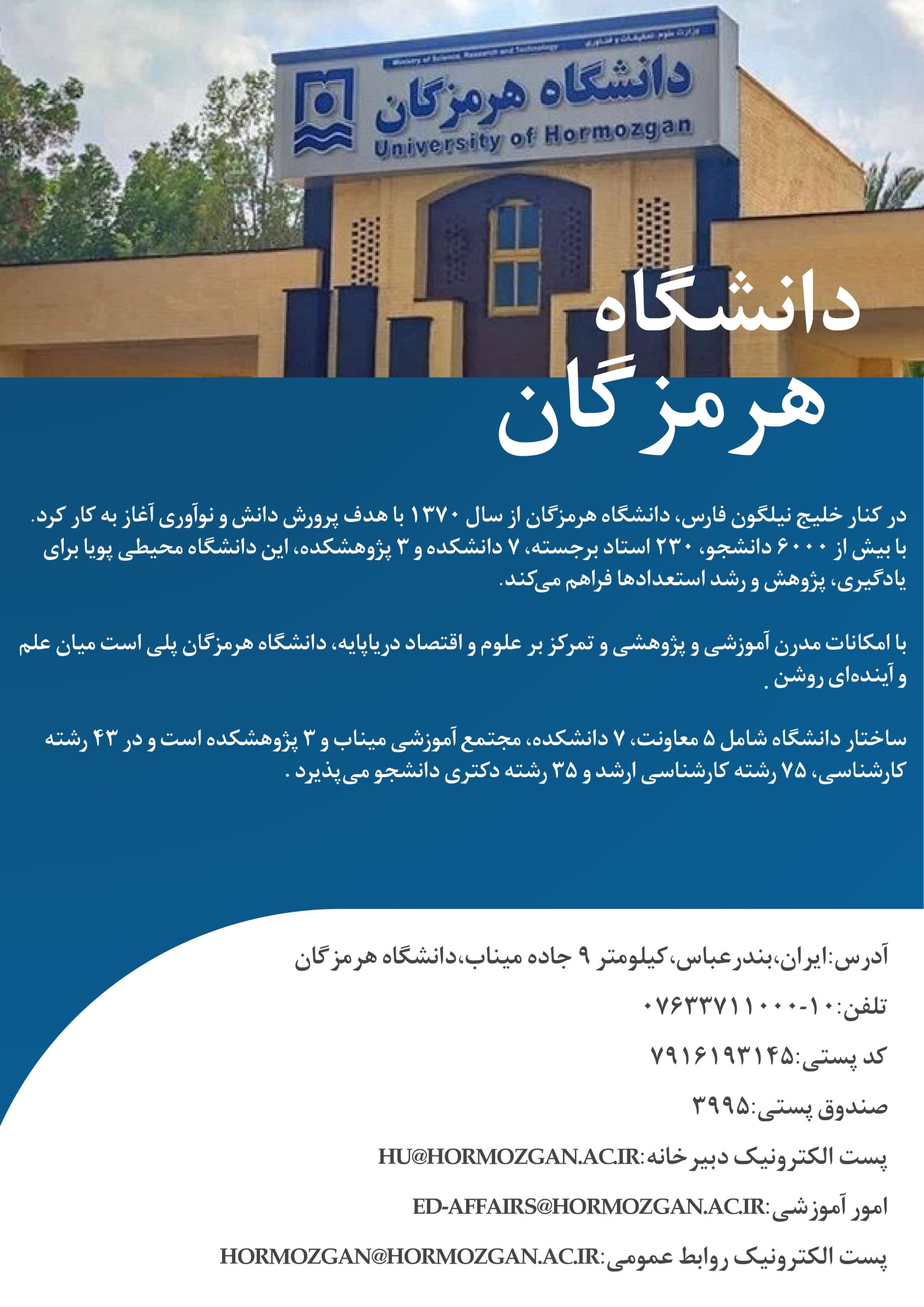 فراخوان انتخاب سرآمدان فرهنگی ویژه اعضای هیأت علمی دانشگاه هرمزگان