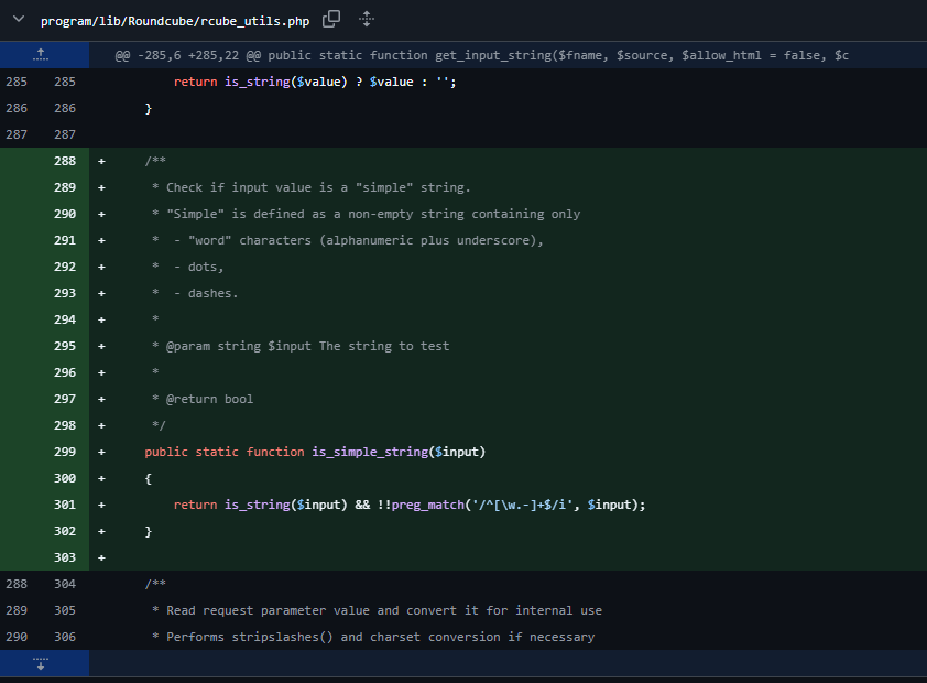 همچنین در program/lib/Roundcube/rcube_utils.php نیز تغییرات زیر صورت پذیرد