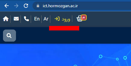 جهت ثبت نام وارد سایت دانشگاه شوید، از بالای منو سمت راست گزینه ورود کلیک نمایید.
